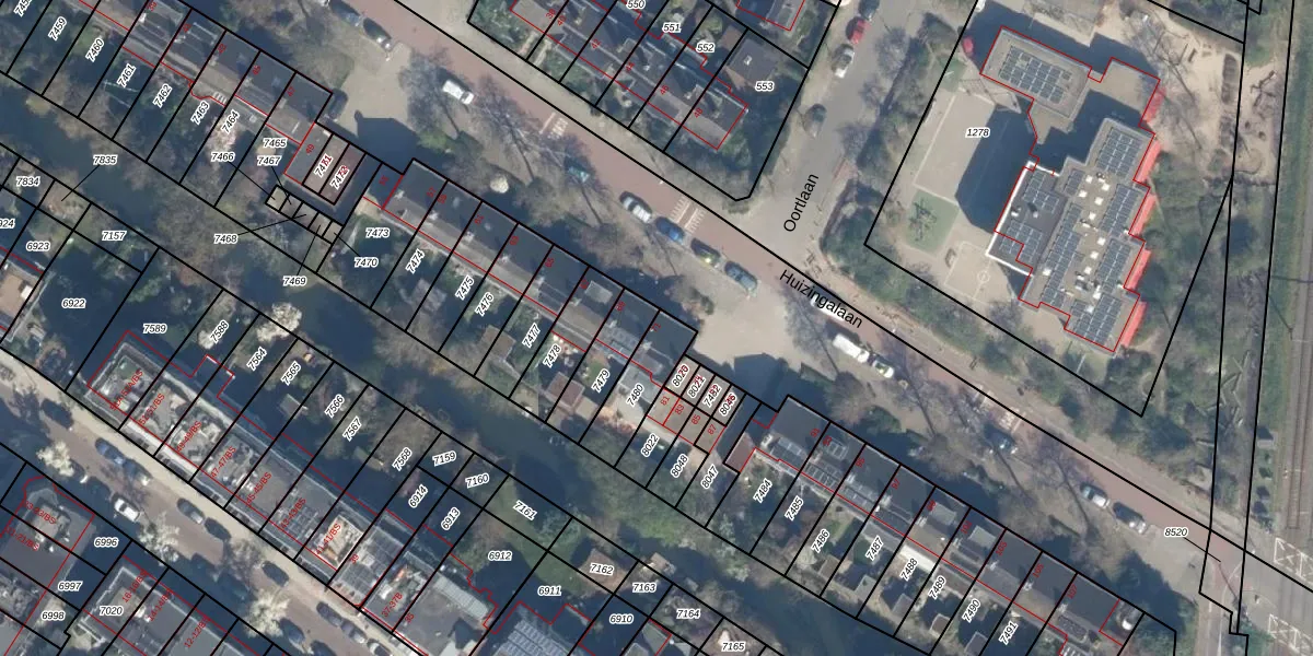 Huizingalaan 71 is gelegen op kadastraal perceel ASD40C7480. Deze kadastrale aanduiding is uniek en wordt gebruikt door het Kadaster om eigendomsrechten en andere zakelijke rechten vast te leggen. Het perceel maakt onderdeel uit van de kadastrale gemeente Abstede.