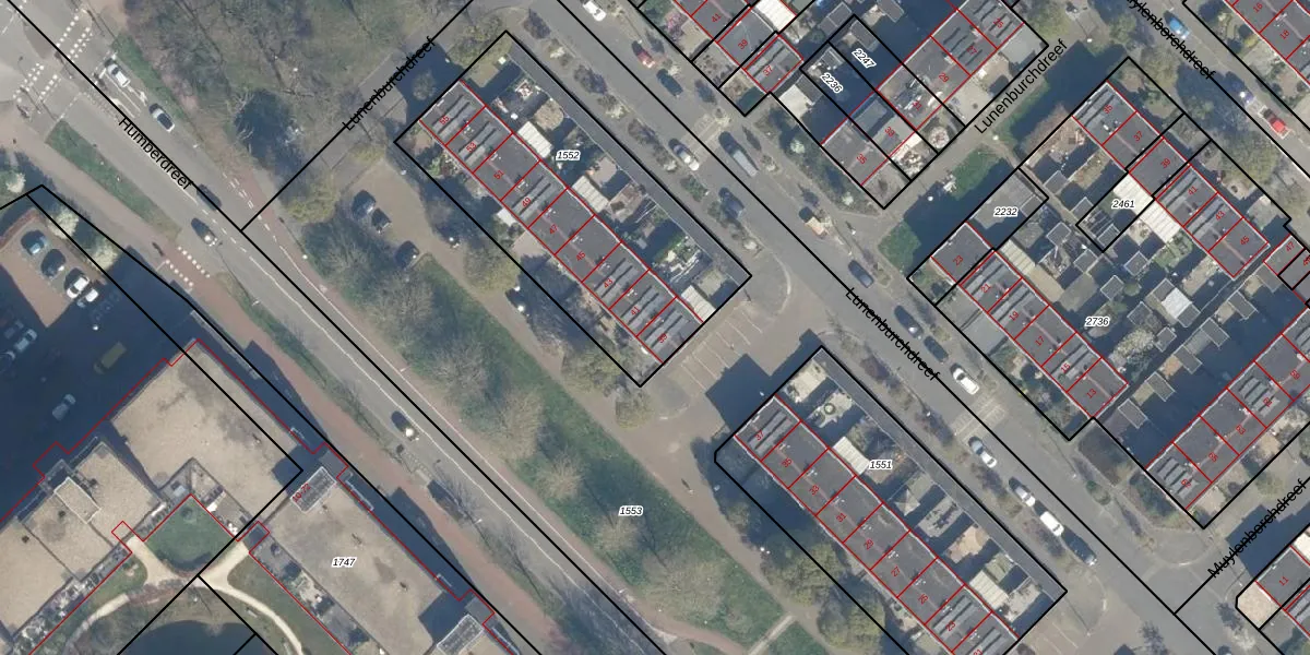 Humberdreef 39 is gelegen op kadastraal perceel UTT00H1552. Deze kadastrale aanduiding is uniek en wordt gebruikt door het Kadaster om eigendomsrechten en andere zakelijke rechten vast te leggen. Het perceel maakt onderdeel uit van de kadastrale gemeente Utrecht.
