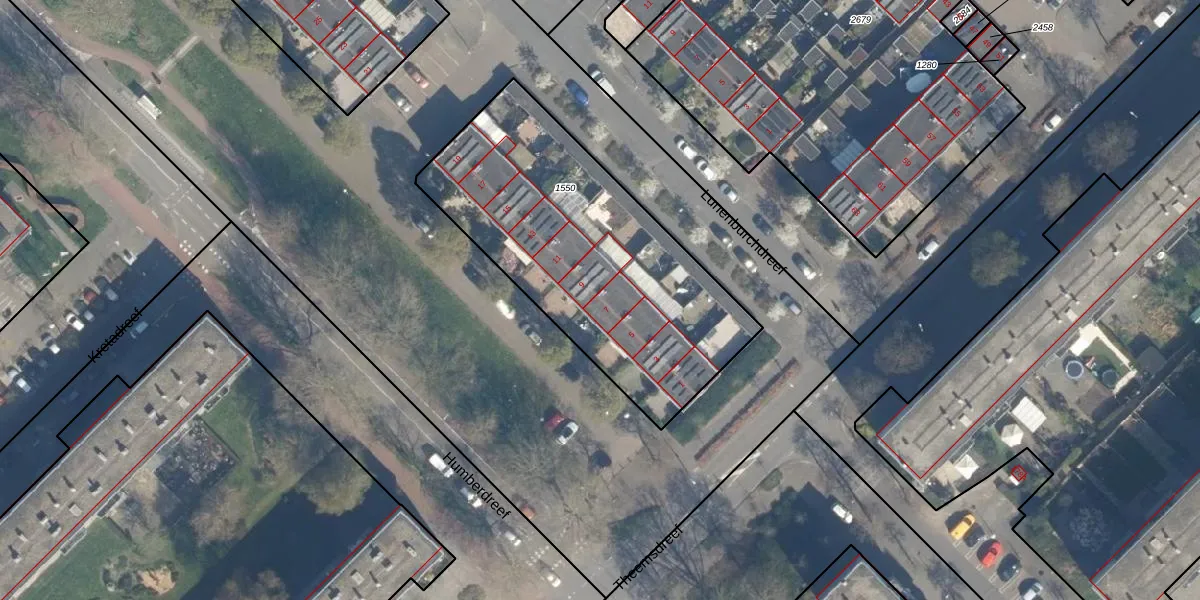 Humberdreef 7 is gelegen op kadastraal perceel UTT00H1550. Deze kadastrale aanduiding is uniek en wordt gebruikt door het Kadaster om eigendomsrechten en andere zakelijke rechten vast te leggen. Het perceel maakt onderdeel uit van de kadastrale gemeente Utrecht.