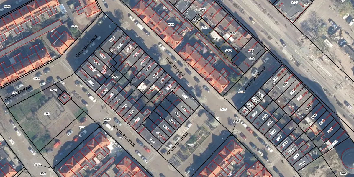 Het perceel waarop Hyacintstraat 14 staat heeft een oppervlakte van 90 m². Dit is een klein perceel. De perceeloppervlakte wordt geregistreerd door het Kadaster. Gedetailleerde informatie over de maten van dit perceel kunt u vinden in het rapport Kadastrale kaart met maatvoering van Hyacintstraat 14.