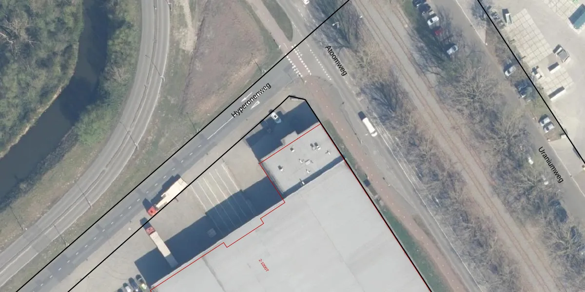 Het perceel waarop Hyperonenweg 2 staat heeft een oppervlakte van 1,6 ha. Dit is een zeer groot perceel. De perceeloppervlakte wordt geregistreerd door het Kadaster. Gedetailleerde informatie over de maten van dit perceel kunt u vinden in het rapport Kadastrale kaart met maatvoering van Hyperonenweg 2.
