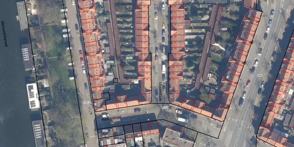 Het perceel waarop IJsselstraat 41 staat heeft een oppervlakte van 4564 m². Dit is een zeer groot perceel. De perceeloppervlakte wordt geregistreerd door het Kadaster. Gedetailleerde informatie over de maten van dit perceel kunt u vinden in het rapport Kadastrale kaart met maatvoering van IJsselstraat 41.