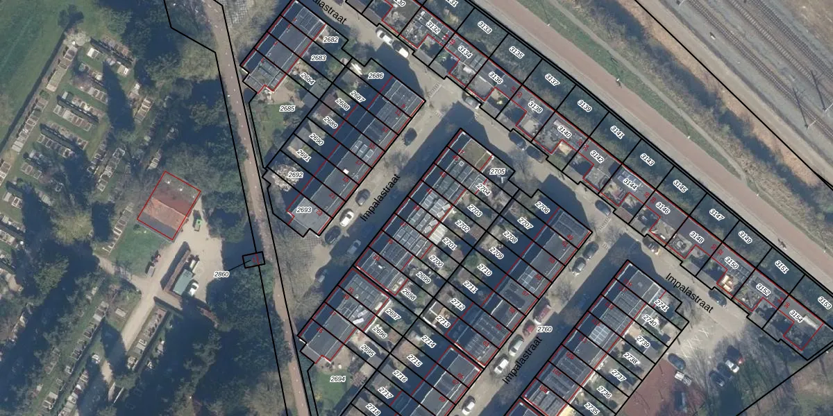 Impalastraat 39 is gelegen op kadastraal perceel TSG00B2701. Deze kadastrale aanduiding is uniek en wordt gebruikt door het Kadaster om eigendomsrechten en andere zakelijke rechten vast te leggen. Het perceel maakt onderdeel uit van de kadastrale gemeente Tolsteeg.
