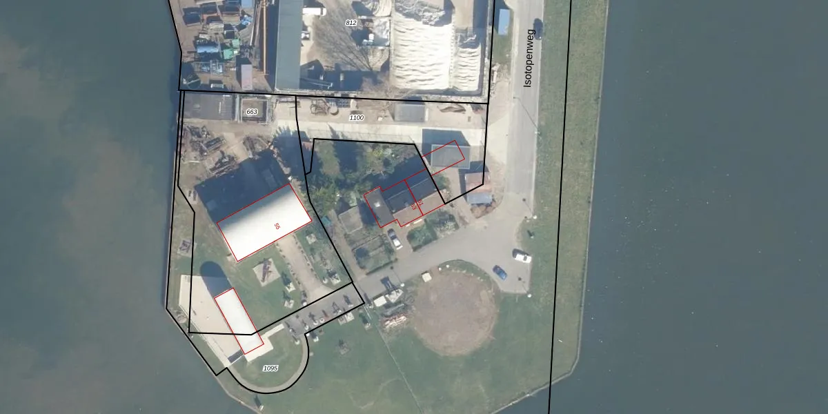 Het perceel waarop Isotopenweg 53 staat heeft een oppervlakte van 25,4 ha. Dit is een zeer groot perceel. De perceeloppervlakte wordt geregistreerd door het Kadaster. Gedetailleerde informatie over de maten van dit perceel kunt u vinden in het rapport Kadastrale kaart met maatvoering van Isotopenweg 53.