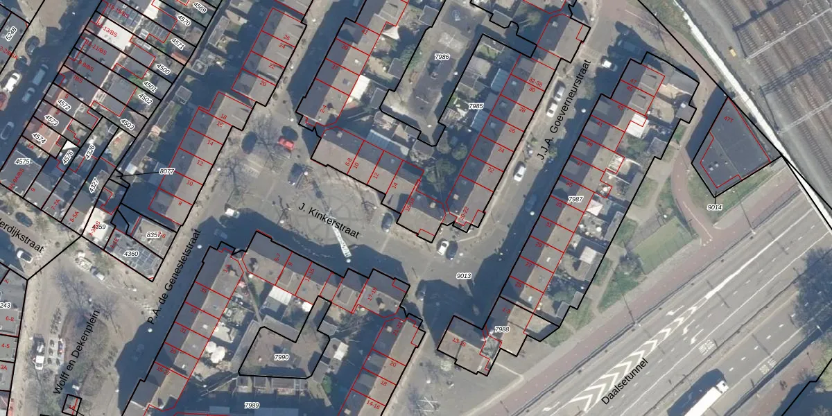 Het perceel waarop J. Kinkerstraat 18 staat heeft een oppervlakte van 2860 m². Dit is een zeer groot perceel. De perceeloppervlakte wordt geregistreerd door het Kadaster. Gedetailleerde informatie over de maten van dit perceel kunt u vinden in het rapport Kadastrale kaart met maatvoering van J. Kinkerstraat 18.