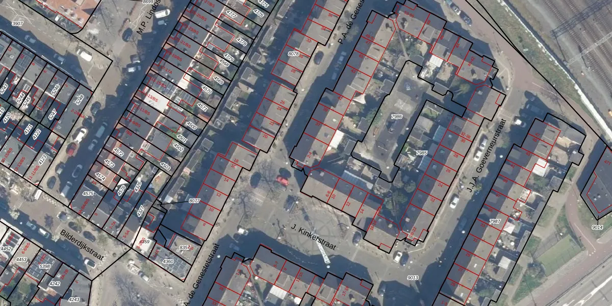 Het perceel waarop J. Kinkerstraat 2 staat heeft een oppervlakte van 2860 m². Dit is een zeer groot perceel. De perceeloppervlakte wordt geregistreerd door het Kadaster. Gedetailleerde informatie over de maten van dit perceel kunt u vinden in het rapport Kadastrale kaart met maatvoering van J. Kinkerstraat 2.