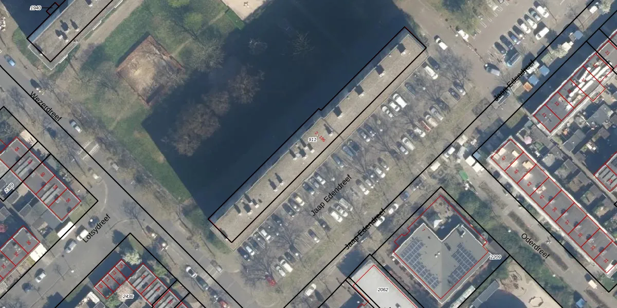 Het perceel waarop Jaap Edendreef 84 staat heeft een oppervlakte van 932 m². Dit is een groot perceel. De perceeloppervlakte wordt geregistreerd door het Kadaster. Gedetailleerde informatie over de maten van dit perceel kunt u vinden in het rapport Kadastrale kaart met maatvoering van Jaap Edendreef 84.