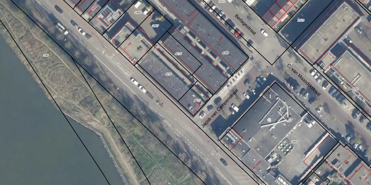Het perceel waarop Jacob van Campenstraat 2-N staat heeft een oppervlakte van 477 m². Dit is een groot perceel. De perceeloppervlakte wordt geregistreerd door het Kadaster. Gedetailleerde informatie over de maten van dit perceel kunt u vinden in het rapport Kadastrale kaart met maatvoering van Jacob van Campenstraat 2-N.
