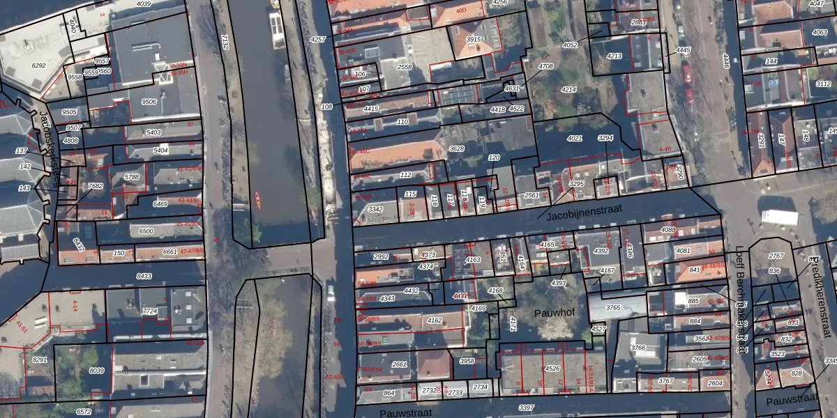 Het perceel waarop Jacobijnenstraat 2-A staat heeft een oppervlakte van 63 m². Dit is een klein perceel. De perceeloppervlakte wordt geregistreerd door het Kadaster. Gedetailleerde informatie over de maten van dit perceel kunt u vinden in het rapport Kadastrale kaart met maatvoering van Jacobijnenstraat 2-A.
