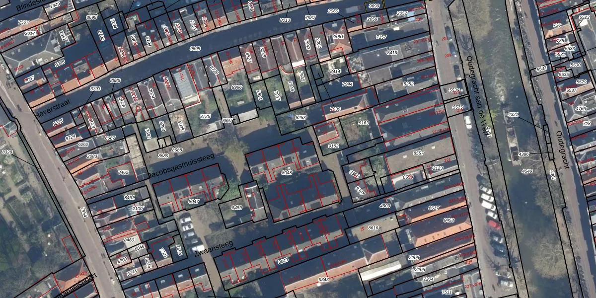 Het perceel waarop Jacobsgasthuissteeg 21 staat heeft een oppervlakte van 570 m². Dit is een groot perceel. De perceeloppervlakte wordt geregistreerd door het Kadaster. Gedetailleerde informatie over de maten van dit perceel kunt u vinden in het rapport Kadastrale kaart met maatvoering van Jacobsgasthuissteeg 21.