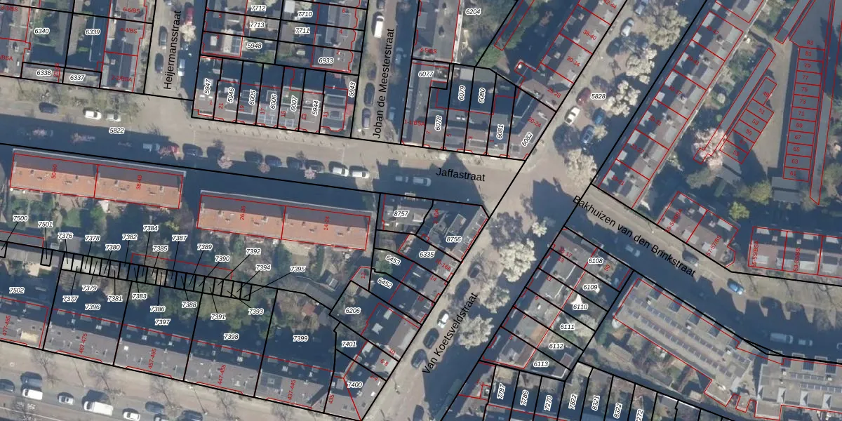 Het perceel waarop Jaffastraat 8 staat heeft een oppervlakte van 100 m². Dit is een middelgroot perceel. De perceeloppervlakte wordt geregistreerd door het Kadaster. Gedetailleerde informatie over de maten van dit perceel kunt u vinden in het rapport Kadastrale kaart met maatvoering van Jaffastraat 8.