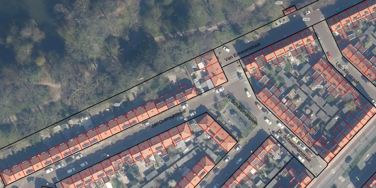 Jan Overdijkstraat 1 is gelegen op kadastraal perceel ZLN02C800. Deze kadastrale aanduiding is uniek en wordt gebruikt door het Kadaster om eigendomsrechten en andere zakelijke rechten vast te leggen. Het perceel maakt onderdeel uit van de kadastrale gemeente Zuilen.