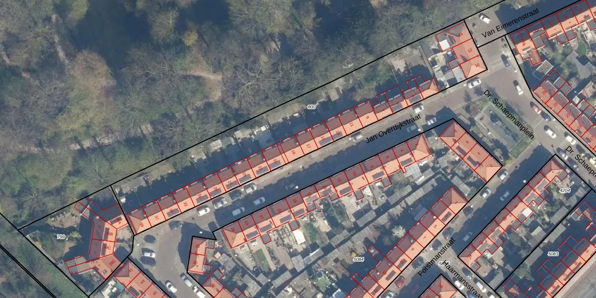 Jan Overdijkstraat 19 is gelegen op kadastraal perceel ZLN02C800. Deze kadastrale aanduiding is uniek en wordt gebruikt door het Kadaster om eigendomsrechten en andere zakelijke rechten vast te leggen. Het perceel maakt onderdeel uit van de kadastrale gemeente Zuilen.