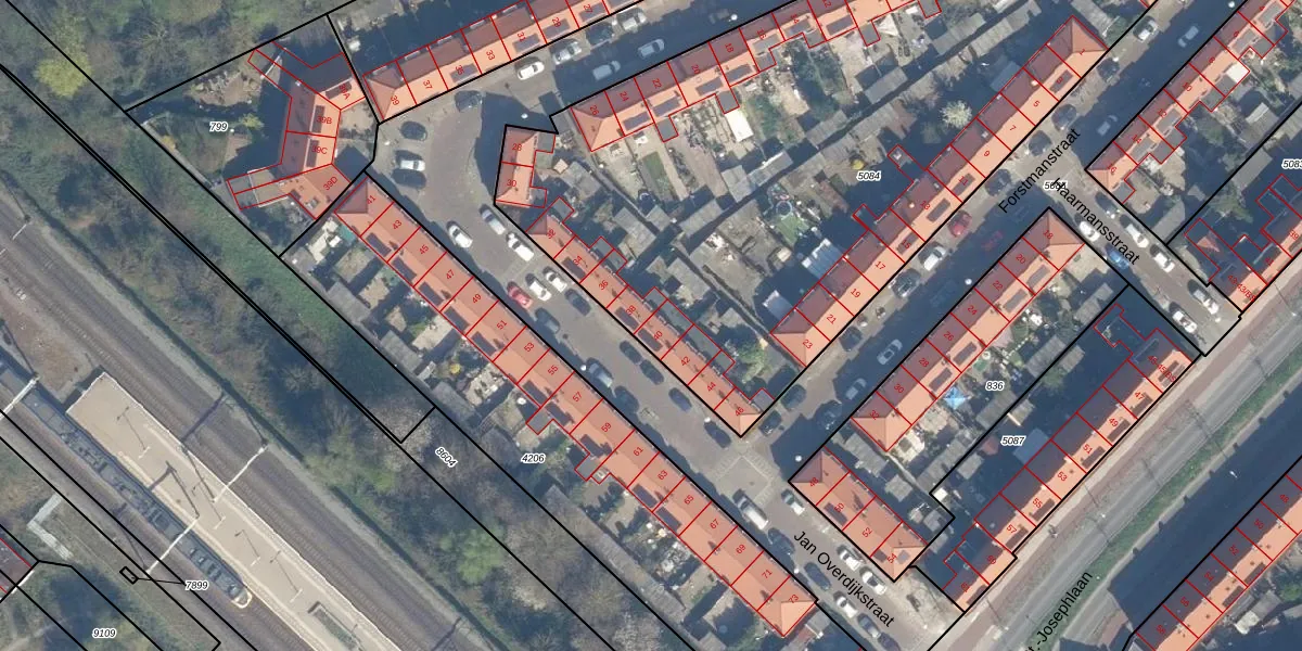 Het perceel waarop Jan Overdijkstraat 40 staat heeft een oppervlakte van 4102 m². Dit is een zeer groot perceel. De perceeloppervlakte wordt geregistreerd door het Kadaster. Gedetailleerde informatie over de maten van dit perceel kunt u vinden in het rapport Kadastrale kaart met maatvoering van Jan Overdijkstraat 40.