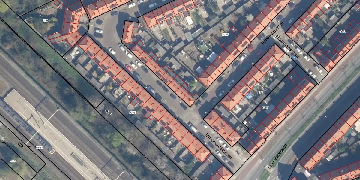Het perceel waarop Jan Overdijkstraat 44 staat heeft een oppervlakte van 4102 m². Dit is een zeer groot perceel. De perceeloppervlakte wordt geregistreerd door het Kadaster. Gedetailleerde informatie over de maten van dit perceel kunt u vinden in het rapport Kadastrale kaart met maatvoering van Jan Overdijkstraat 44.