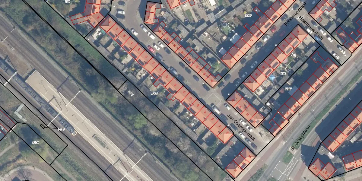 Het perceel waarop Jan Overdijkstraat 61 staat heeft een oppervlakte van 2086 m². Dit is een zeer groot perceel. De perceeloppervlakte wordt geregistreerd door het Kadaster. Gedetailleerde informatie over de maten van dit perceel kunt u vinden in het rapport Kadastrale kaart met maatvoering van Jan Overdijkstraat 61.
