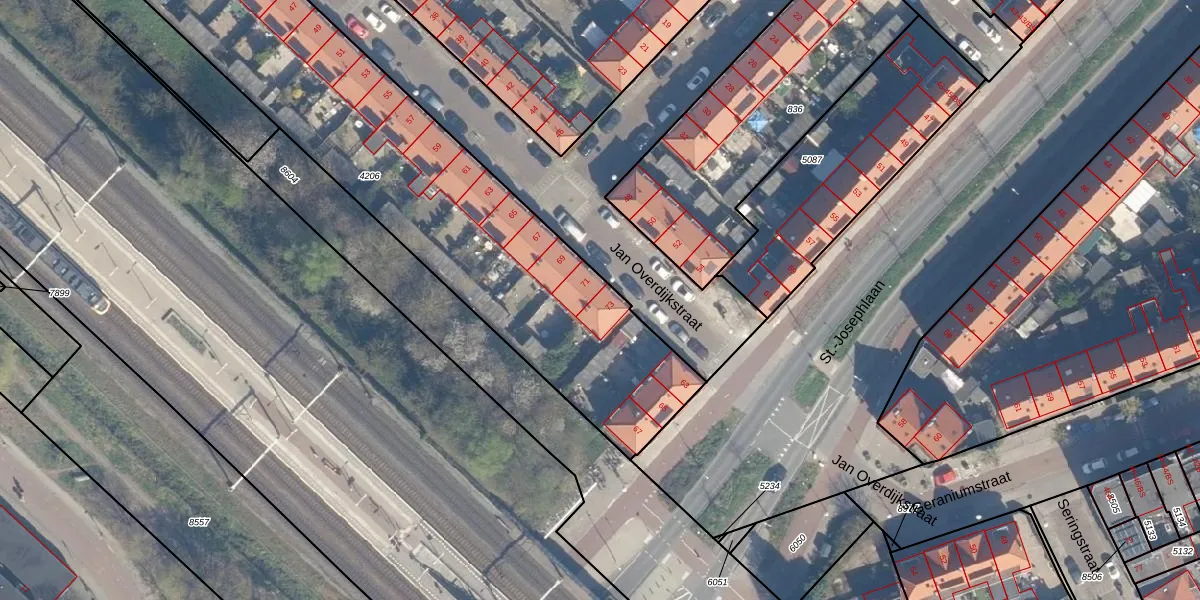 Het perceel waarop Jan Overdijkstraat 73 staat heeft een oppervlakte van 2086 m². Dit is een zeer groot perceel. De perceeloppervlakte wordt geregistreerd door het Kadaster. Gedetailleerde informatie over de maten van dit perceel kunt u vinden in het rapport Kadastrale kaart met maatvoering van Jan Overdijkstraat 73.
