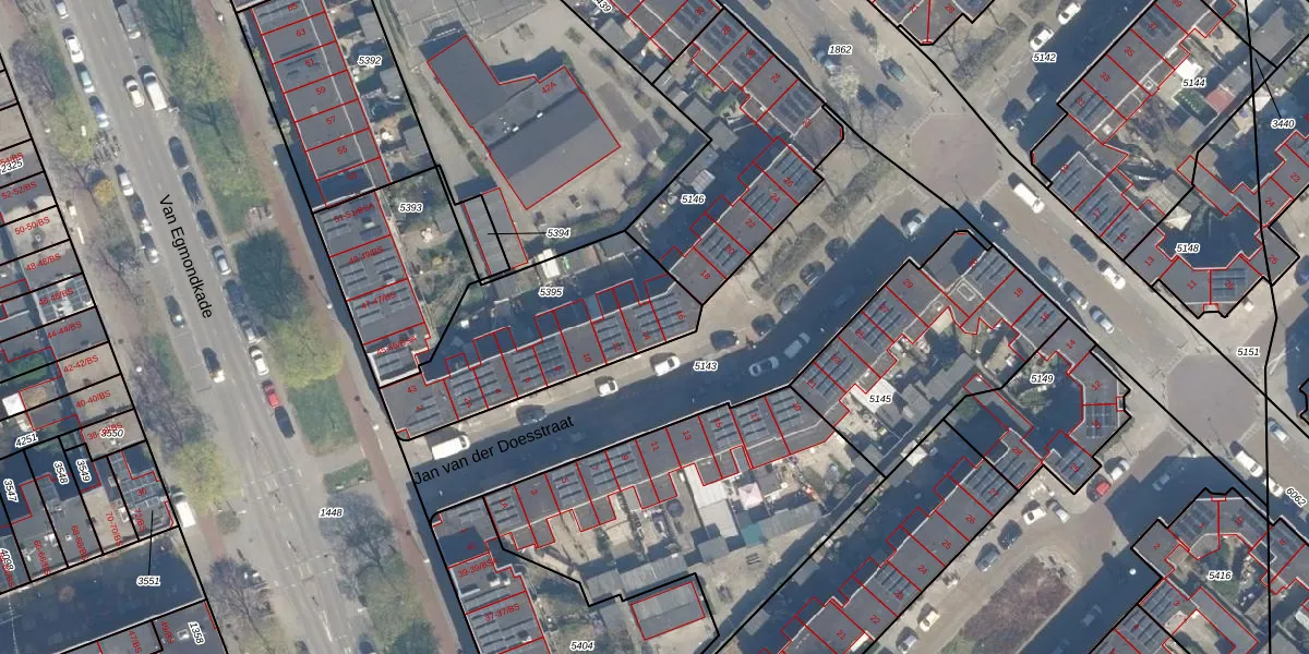 Jan van der Doesstraat 14 is gelegen op kadastraal perceel ZLN02C5395. Deze kadastrale aanduiding is uniek en wordt gebruikt door het Kadaster om eigendomsrechten en andere zakelijke rechten vast te leggen. Het perceel maakt onderdeel uit van de kadastrale gemeente Zuilen.