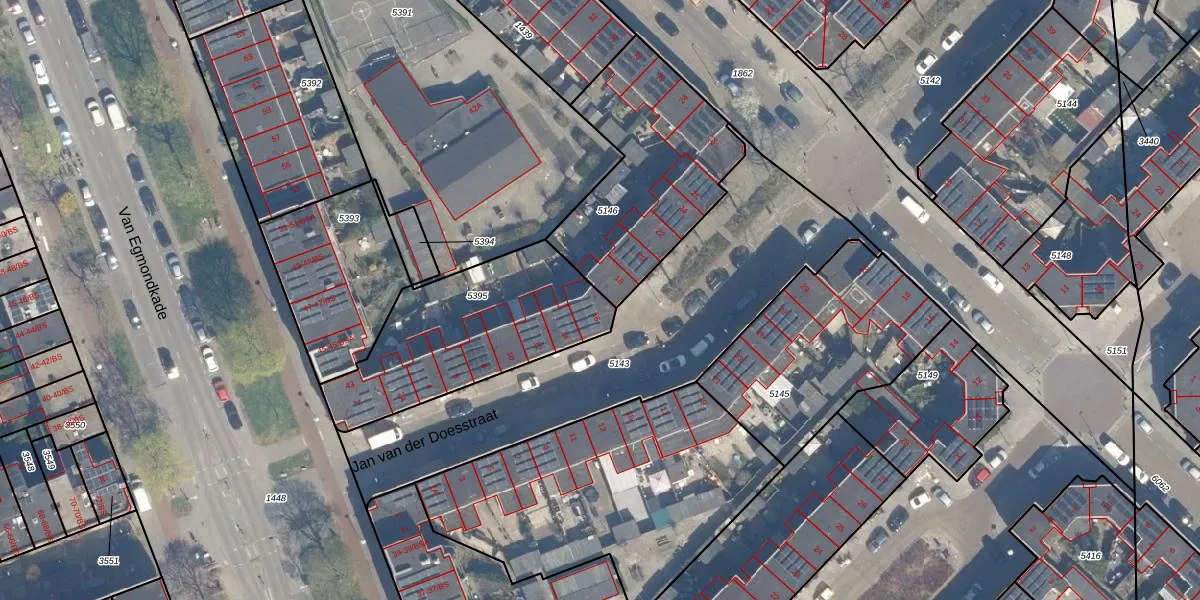 Jan van der Doesstraat 16 is gelegen op kadastraal perceel ZLN02C5395. Deze kadastrale aanduiding is uniek en wordt gebruikt door het Kadaster om eigendomsrechten en andere zakelijke rechten vast te leggen. Het perceel maakt onderdeel uit van de kadastrale gemeente Zuilen.
