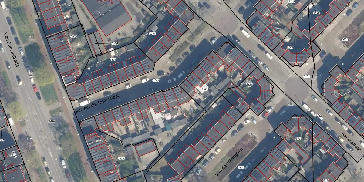 Jan van der Doesstraat 19 is gelegen op kadastraal perceel ZLN02C5405. Deze kadastrale aanduiding is uniek en wordt gebruikt door het Kadaster om eigendomsrechten en andere zakelijke rechten vast te leggen. Het perceel maakt onderdeel uit van de kadastrale gemeente Zuilen.