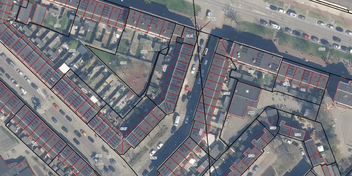 Het perceel waarop Jan van der Doesstraat 42 staat heeft een oppervlakte van 692 m². Dit is een groot perceel. De perceeloppervlakte wordt geregistreerd door het Kadaster. Gedetailleerde informatie over de maten van dit perceel kunt u vinden in het rapport Kadastrale kaart met maatvoering van Jan van der Doesstraat 42.