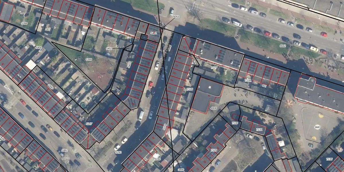 Het perceel waarop Jan van der Doesstraat 51 staat heeft een oppervlakte van 740 m². Dit is een groot perceel. De perceeloppervlakte wordt geregistreerd door het Kadaster. Gedetailleerde informatie over de maten van dit perceel kunt u vinden in het rapport Kadastrale kaart met maatvoering van Jan van der Doesstraat 51.