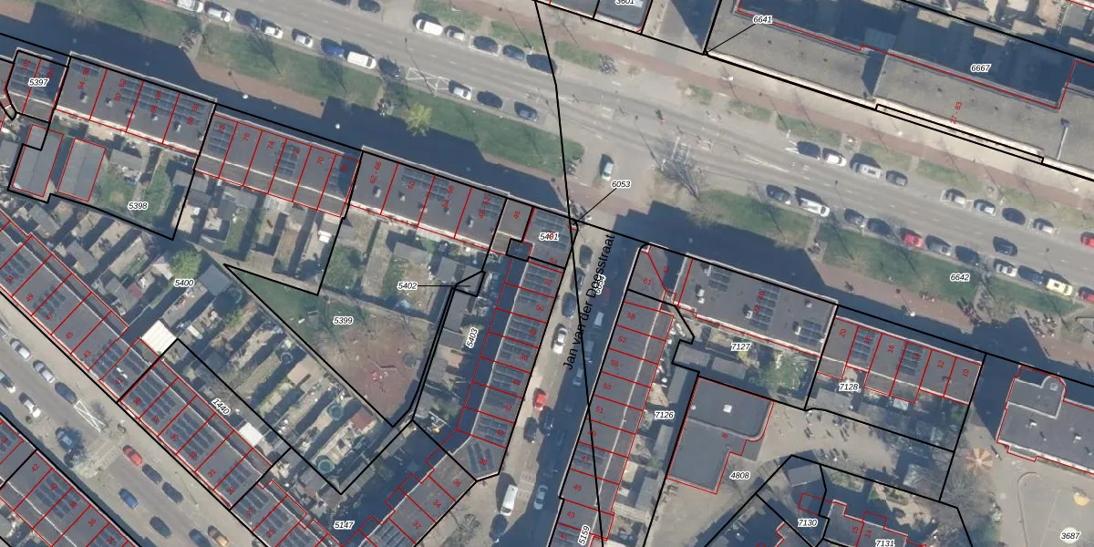 Het perceel waarop Jan van der Doesstraat 52 staat heeft een oppervlakte van 692 m². Dit is een groot perceel. De perceeloppervlakte wordt geregistreerd door het Kadaster. Gedetailleerde informatie over de maten van dit perceel kunt u vinden in het rapport Kadastrale kaart met maatvoering van Jan van der Doesstraat 52.