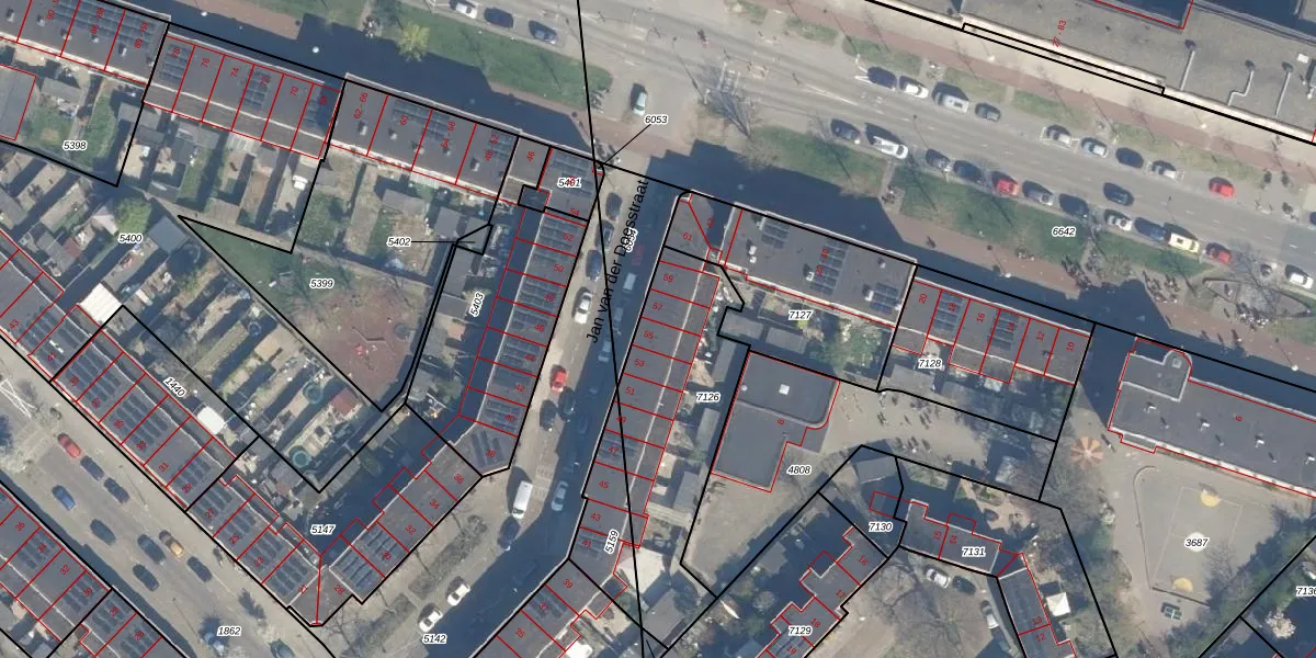 Het perceel waarop Jan van der Doesstraat 55 staat heeft een oppervlakte van 740 m². Dit is een groot perceel. De perceeloppervlakte wordt geregistreerd door het Kadaster. Gedetailleerde informatie over de maten van dit perceel kunt u vinden in het rapport Kadastrale kaart met maatvoering van Jan van der Doesstraat 55.