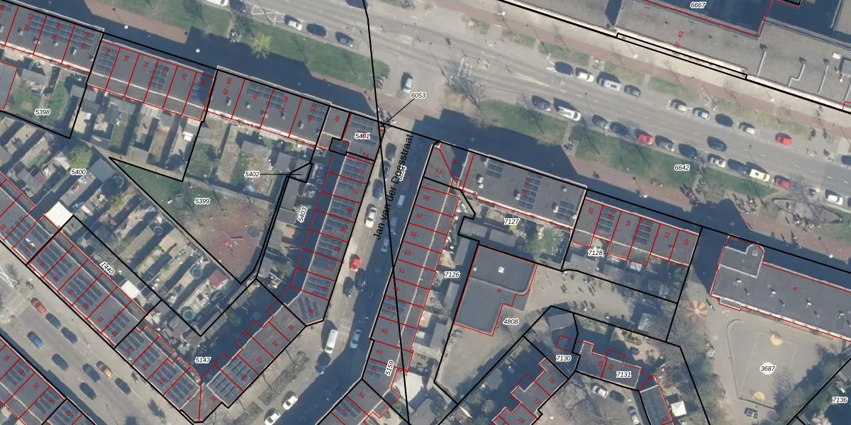 Het perceel waarop Jan van der Doesstraat 57 staat heeft een oppervlakte van 740 m². Dit is een groot perceel. De perceeloppervlakte wordt geregistreerd door het Kadaster. Gedetailleerde informatie over de maten van dit perceel kunt u vinden in het rapport Kadastrale kaart met maatvoering van Jan van der Doesstraat 57.