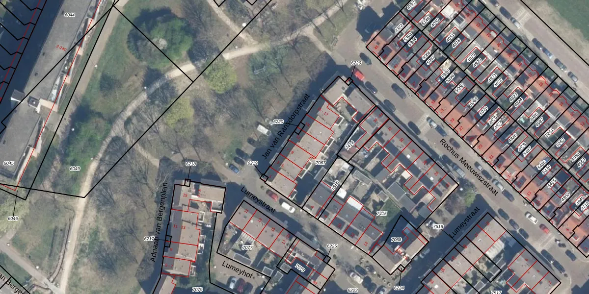 Het perceel waarop Jan van Ransdorpstraat 7 staat heeft een oppervlakte van 725 m². Dit is een groot perceel. De perceeloppervlakte wordt geregistreerd door het Kadaster. Gedetailleerde informatie over de maten van dit perceel kunt u vinden in het rapport Kadastrale kaart met maatvoering van Jan van Ransdorpstraat 7.