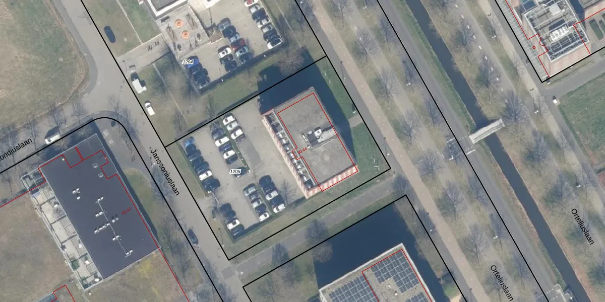 Het perceel waarop Janssoniuslaan 44 staat heeft een oppervlakte van 2645 m². Dit is een zeer groot perceel. De perceeloppervlakte wordt geregistreerd door het Kadaster. Gedetailleerde informatie over de maten van dit perceel kunt u vinden in het rapport Kadastrale kaart met maatvoering van Janssoniuslaan 44.