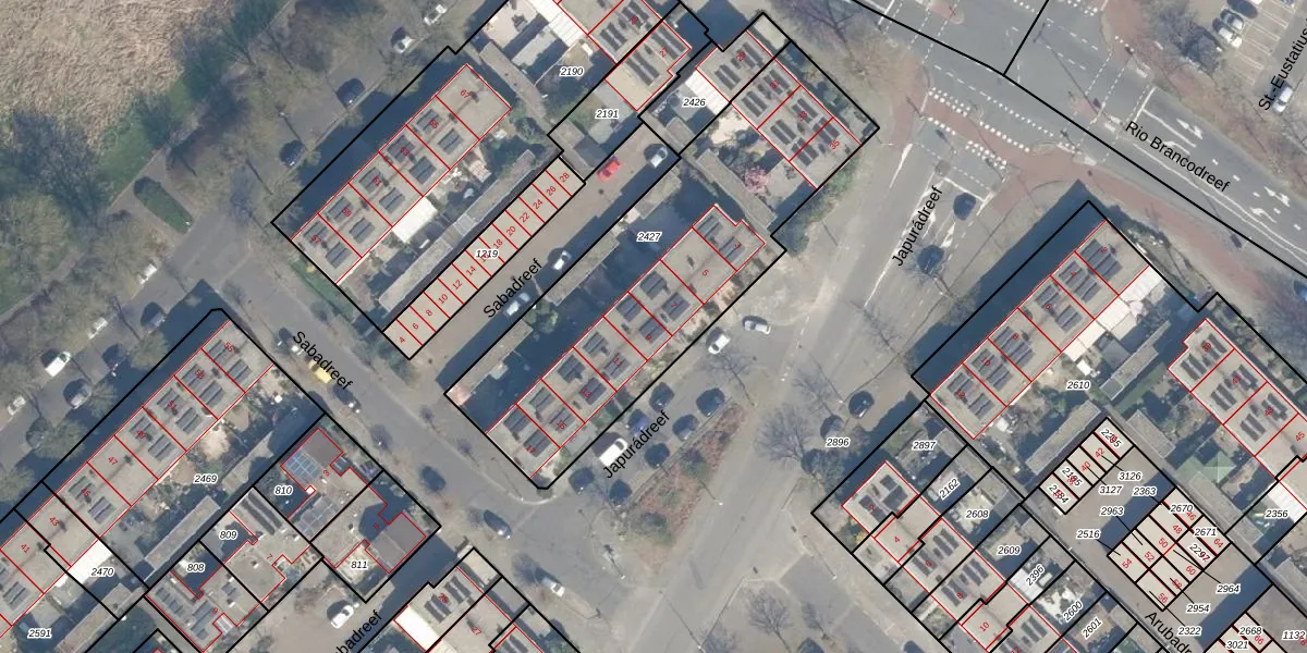Japurádreef 9 is gelegen op kadastraal perceel UTT00F2427. Deze kadastrale aanduiding is uniek en wordt gebruikt door het Kadaster om eigendomsrechten en andere zakelijke rechten vast te leggen. Het perceel maakt onderdeel uit van de kadastrale gemeente Utrecht.