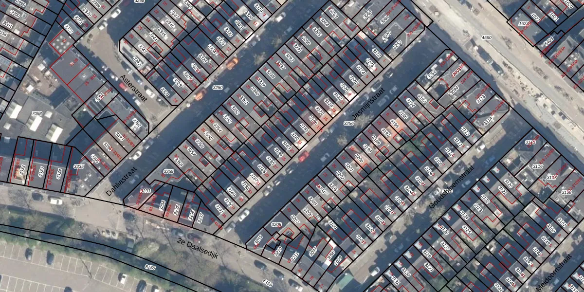 Het perceel waarop Jasmijnstraat 23 staat heeft een oppervlakte van 60 m². Dit is een klein perceel. De perceeloppervlakte wordt geregistreerd door het Kadaster. Gedetailleerde informatie over de maten van dit perceel kunt u vinden in het rapport Kadastrale kaart met maatvoering van Jasmijnstraat 23.