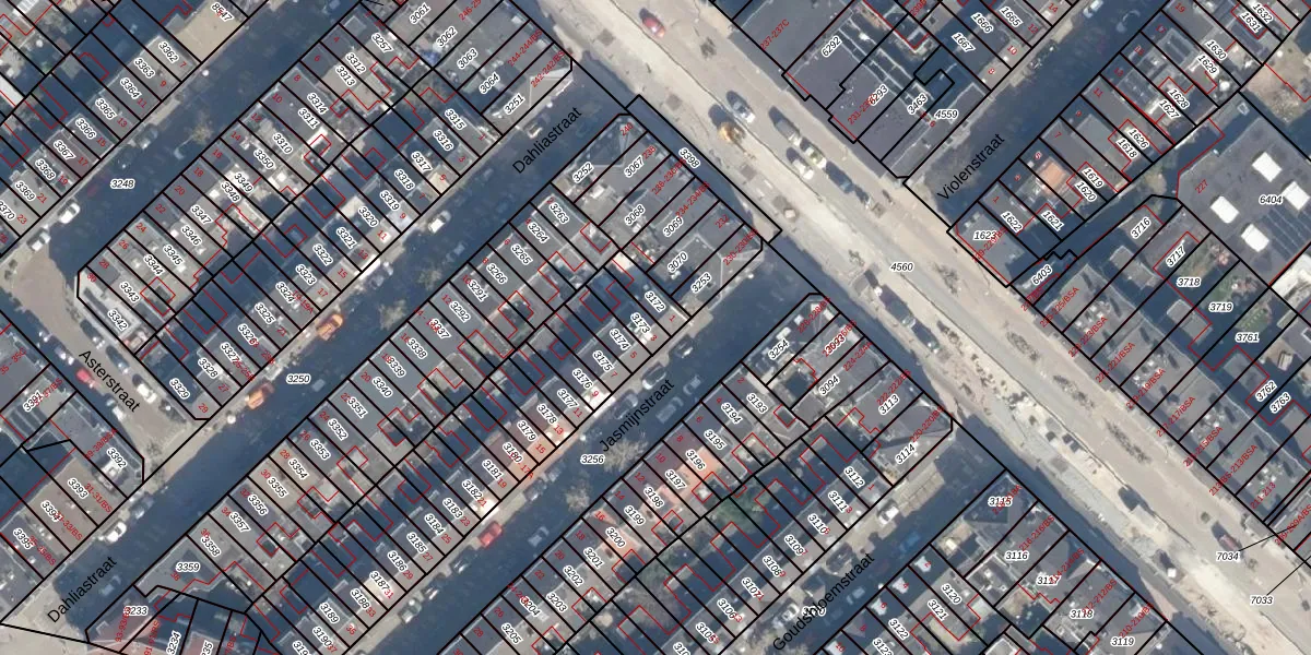 Gebruik de zoekbalk of klik op een perceel voor informatie over de adressen binnen dit perceel.