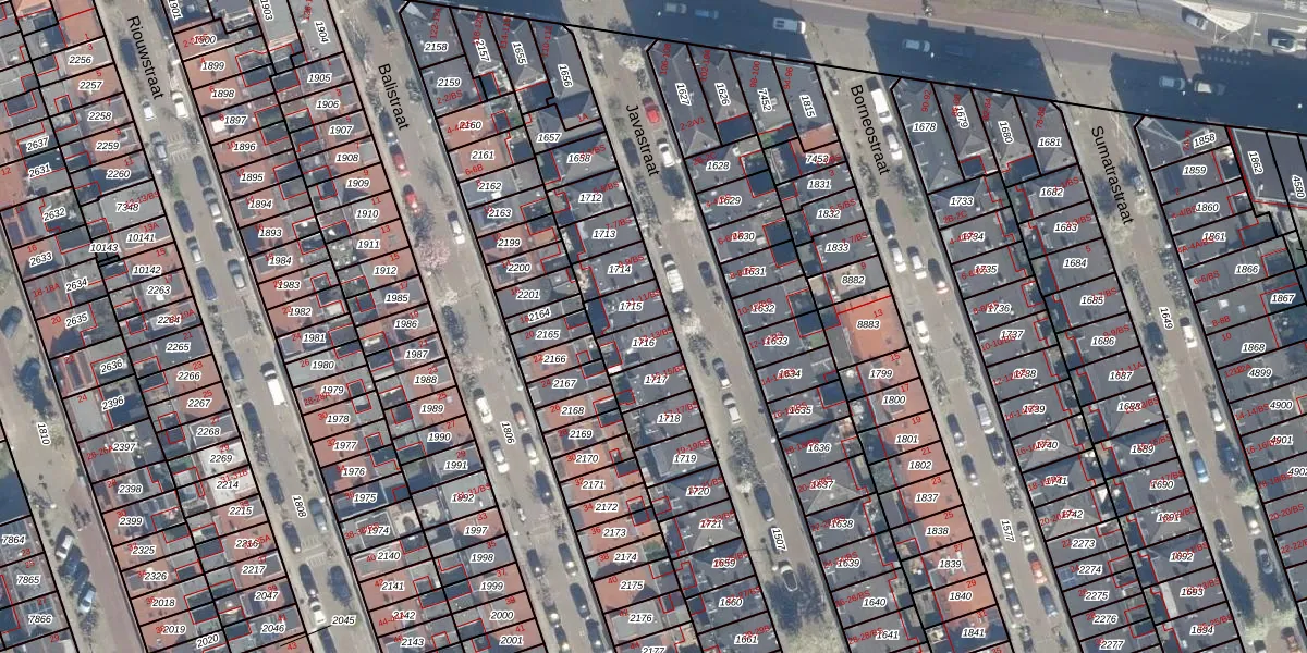 Het perceel waarop Javastraat 13 staat heeft een oppervlakte van 69 m². Dit is een klein perceel. De perceeloppervlakte wordt geregistreerd door het Kadaster. Gedetailleerde informatie over de maten van dit perceel kunt u vinden in het rapport Kadastrale kaart met maatvoering van Javastraat 13.