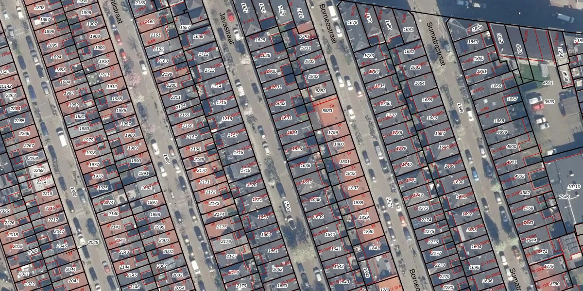 Het perceel waarop Javastraat 16 staat heeft een oppervlakte van 66 m². Dit is een klein perceel. De perceeloppervlakte wordt geregistreerd door het Kadaster. Gedetailleerde informatie over de maten van dit perceel kunt u vinden in het rapport Kadastrale kaart met maatvoering van Javastraat 16.