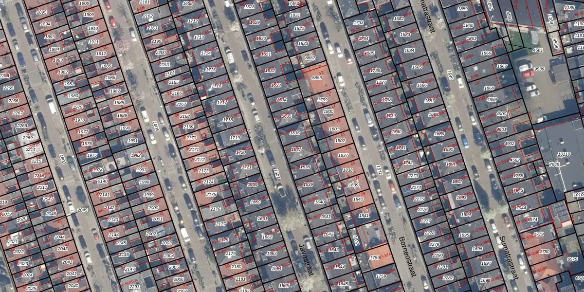 Het perceel waarop Javastraat 20 staat heeft een oppervlakte van 74 m². Dit is een klein perceel. De perceeloppervlakte wordt geregistreerd door het Kadaster. Gedetailleerde informatie over de maten van dit perceel kunt u vinden in het rapport Kadastrale kaart met maatvoering van Javastraat 20.