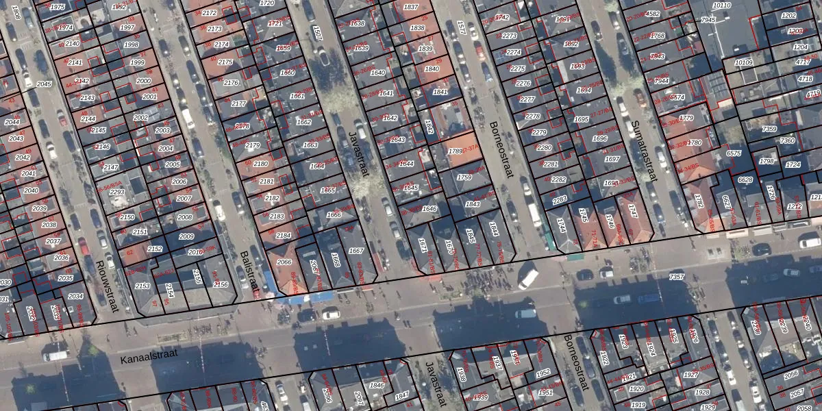 Het perceel waarop Javastraat 38 staat heeft een oppervlakte van 70 m². Dit is een klein perceel. De perceeloppervlakte wordt geregistreerd door het Kadaster. Gedetailleerde informatie over de maten van dit perceel kunt u vinden in het rapport Kadastrale kaart met maatvoering van Javastraat 38.