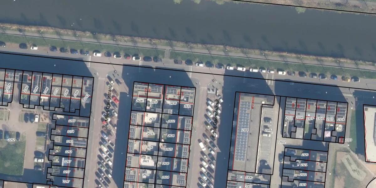 Gebruik de zoekbalk of klik op een perceel voor informatie over de adressen binnen dit perceel.