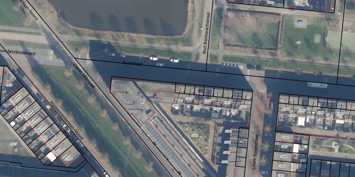 Gebruik de zoekbalk of klik op een perceel voor informatie over de adressen binnen dit perceel.