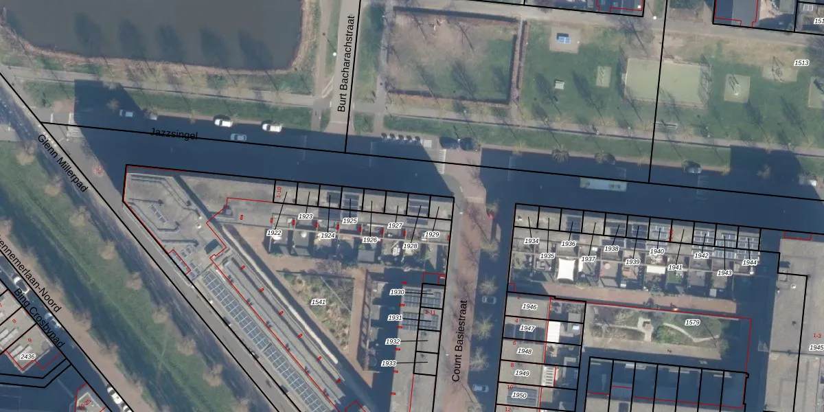 Het perceel waarop Jazzsingel 9 staat heeft een oppervlakte van 30 m². Dit is een klein perceel. De perceeloppervlakte wordt geregistreerd door het Kadaster. Gedetailleerde informatie over de maten van dit perceel kunt u vinden in het rapport Kadastrale kaart met maatvoering van Jazzsingel 9.