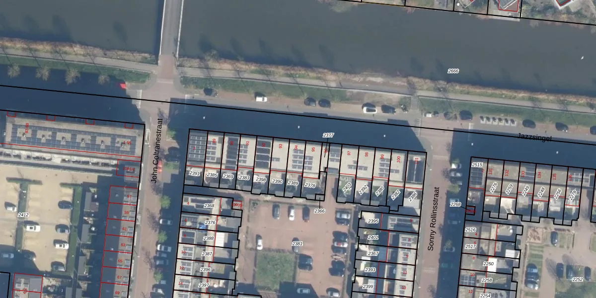 Het perceel waarop Jazzsingel 94 staat heeft een oppervlakte van 107 m². Dit is een middelgroot perceel. De perceeloppervlakte wordt geregistreerd door het Kadaster. Gedetailleerde informatie over de maten van dit perceel kunt u vinden in het rapport Kadastrale kaart met maatvoering van Jazzsingel 94.