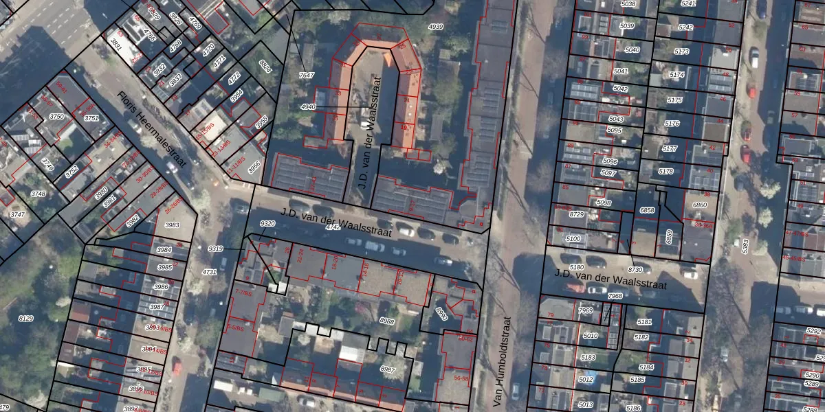 Het perceel waarop J.D. van der Waalsstraat 13 staat heeft een oppervlakte van 2845 m². Dit is een zeer groot perceel. De perceeloppervlakte wordt geregistreerd door het Kadaster. Gedetailleerde informatie over de maten van dit perceel kunt u vinden in het rapport Kadastrale kaart met maatvoering van J.D. van der Waalsstraat 13.