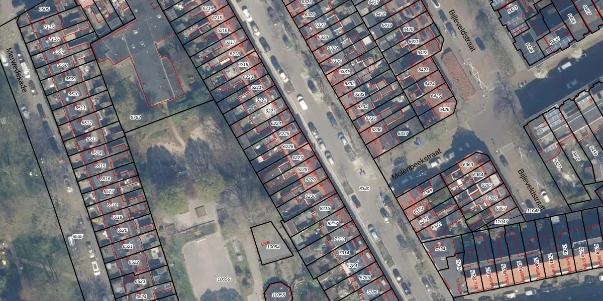 Gebruik de zoekbalk of klik op een perceel voor informatie over de adressen binnen dit perceel.