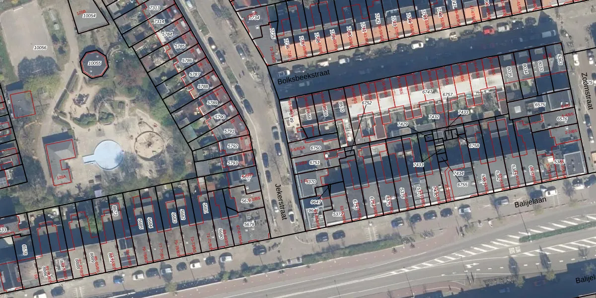Het perceel waarop Jekerstraat 5-BS staat heeft een oppervlakte van 91 m². Dit is een klein perceel. De perceeloppervlakte wordt geregistreerd door het Kadaster. Gedetailleerde informatie over de maten van dit perceel kunt u vinden in het rapport Kadastrale kaart met maatvoering van Jekerstraat 5-BS.