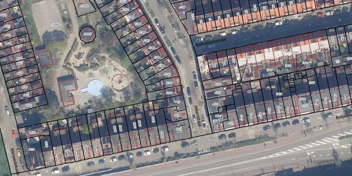 Gebruik de zoekbalk of klik op een perceel voor informatie over de adressen binnen dit perceel.