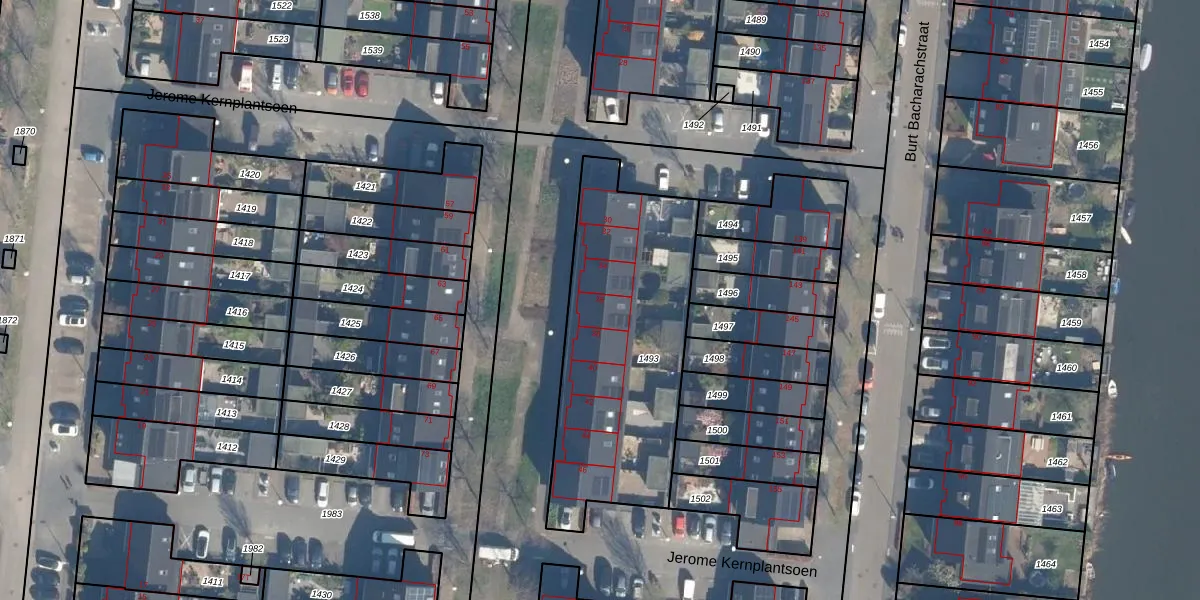Jerome Kernplantsoen 36 is gelegen op kadastraal perceel CTR00A1493. Deze kadastrale aanduiding is uniek en wordt gebruikt door het Kadaster om eigendomsrechten en andere zakelijke rechten vast te leggen. Het perceel maakt onderdeel uit van de kadastrale gemeente Catharijne.