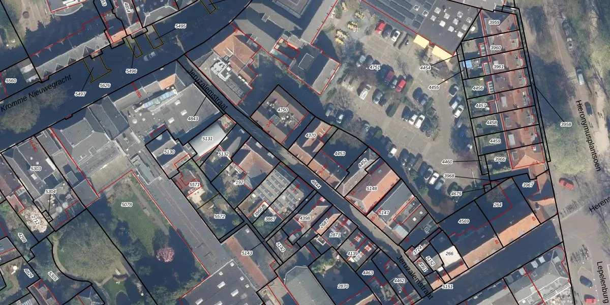 Jeruzalemstraat 8 is gelegen op kadastraal perceel UTT00B4370. Deze kadastrale aanduiding is uniek en wordt gebruikt door het Kadaster om eigendomsrechten en andere zakelijke rechten vast te leggen. Het perceel maakt onderdeel uit van de kadastrale gemeente Utrecht.