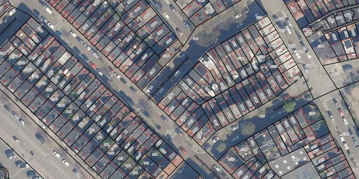 Jodocus van Lodensteinstraat 1 is gelegen op kadastraal perceel ZLN02C2341. Deze kadastrale aanduiding is uniek en wordt gebruikt door het Kadaster om eigendomsrechten en andere zakelijke rechten vast te leggen. Het perceel maakt onderdeel uit van de kadastrale gemeente Zuilen.