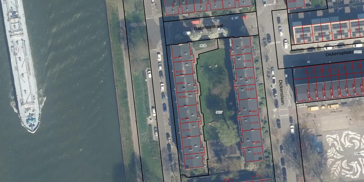 Het adres is gelegen op perceel 9638 in de sectie C en de kadastrale gemeente Catharijne. De kadastrale aanduiding is aldus CTR00-C-9638. Het perceel is met 1235 m² relatief groot. Het gemiddelde ligt in de kadastrale gemeente Catharijne op 828,34 m². De grootste perceeloppervlakte in de kadastrale gemeente is 35,6 ha. De kleinste oppervlakte bedraagt 0 m². Er zijn 32 adressen aanwezig op het perceel. De huidige grenzen van het perceel zijn digitaal in de Basisregistratie Kadaster (BRK) geregistreerd op 28-05-2010.